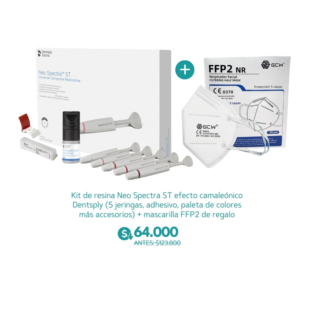 Kit completo de resina Neo Spectra ST efecto camaleónico de Dentsply, diseñado para lograr restauraciones estéticas que se adaptan al color natural del diente. Incluye:
