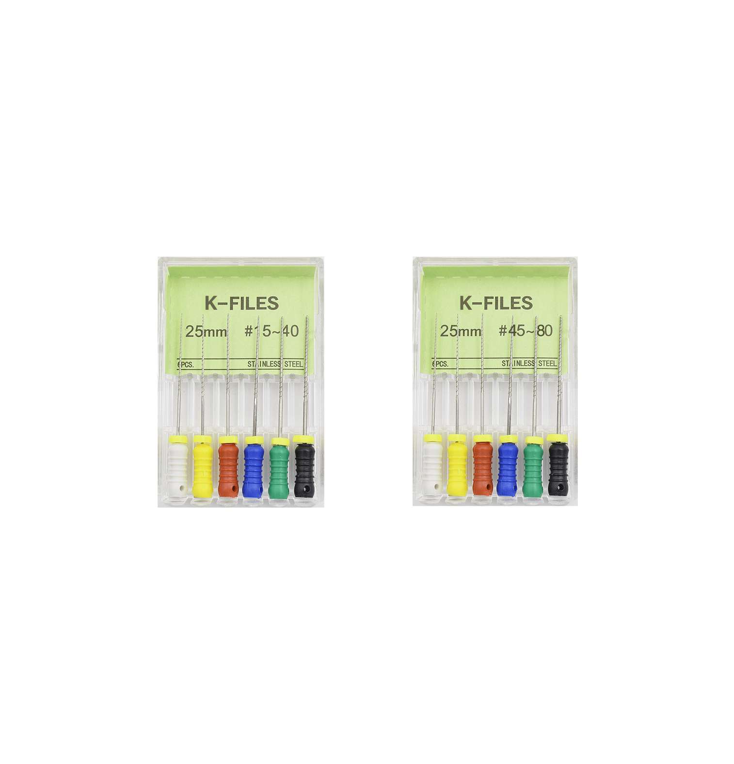 • Lima K Files 25 mm (Primera y segunda serie) 6 Unid. – MANI INC son utilizadas para ampliar el conducto, haciendo la pared lisa y plana a travez de la trituración y pulimiento