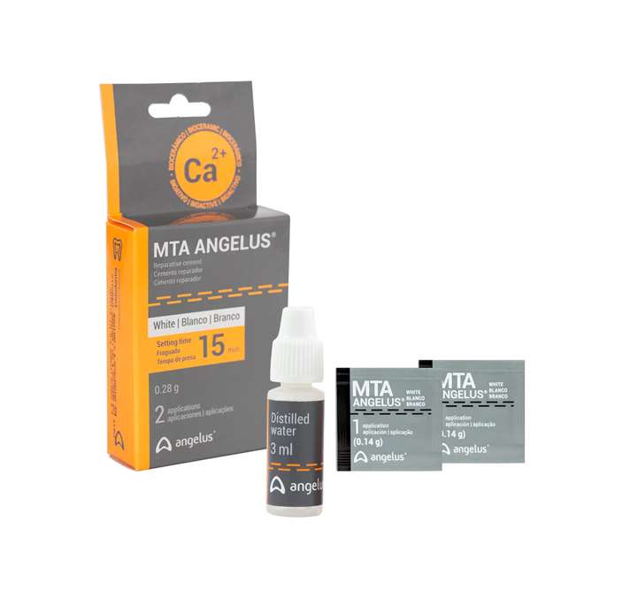 - MTA Angelus White 0.28g Es un cemento reparador endodóntico biocerámico a base de óxidos minerales.