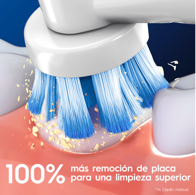 100% más remoción de placa bacteriana para una limpieza superior Vs Cepillo manual